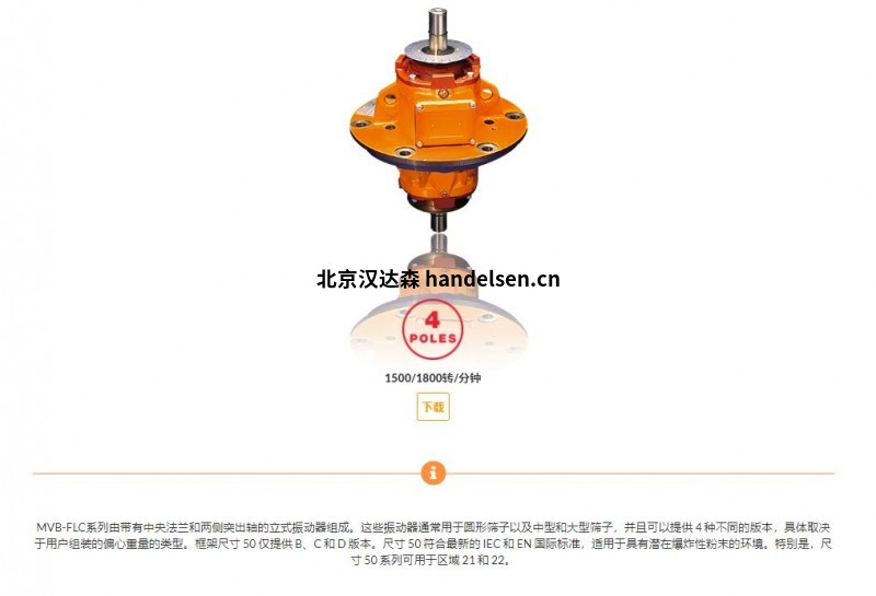 Italvibras MVB-FLC系列由帶有中央法蘭和兩側突出軸的立式振動器組成。這些振動器通常用于圓形篩子以及中型和大型篩子,并且可以提供 4 種不同的版本,具體取決于用戶組裝的偏心重量的類型。框架尺寸 50 僅提供 B、C 和 D 版本。尺寸 50 符合最新的 IEC 和 EN 國際標準,適用于具有潛在爆炸性粉末的環(huán)境。特別是,尺寸 50 系列可用于區(qū)域 21 和 22。